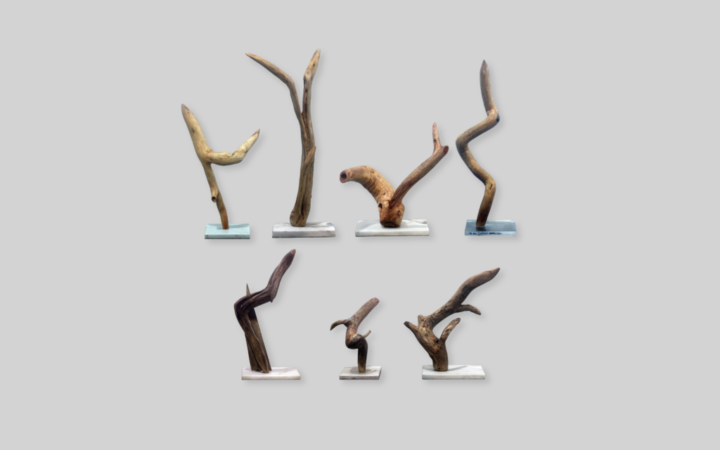 Peças criadas a partir de materiais recuperados.